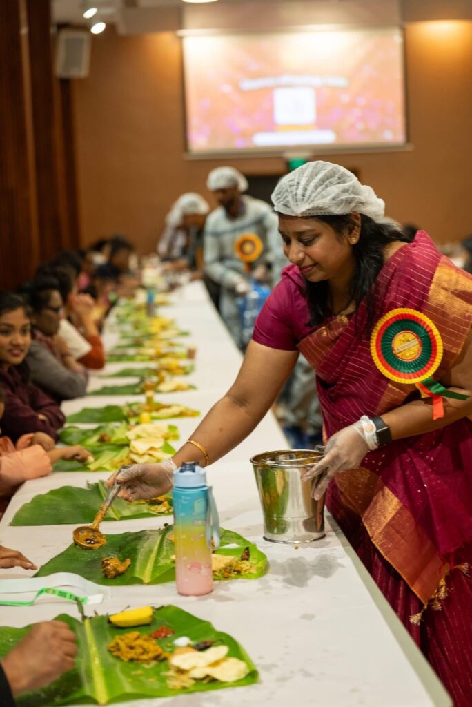 இன்றைய காலத்தில்,  கல்யாண வீடாகயிருந்தாலும் சரி, சரவணபவன் மீல்ஸ் கூடமாக இருந்ததாலும் சரி, இலையில் முதலில் ஊற்றிய சாம்பார் காலியாகும்முன்னே அவர்களுக்கு பின்னாடி போய் இடம் பிடிக்க நிற்கும் பழக்கத்துக்கு நடுவில், குழந்தைகள், முதல் வயதான பெற்றோர்கள் வரை பொறுமையாக அவர்களது மணிக்கட்டில் அணிந்திருந்த அடையாள அட்டையின் வண்ணத்தை அழைக்கும்வரை மேடையில் நடைபெற்றுகொண்டித்திருந்த கலை நிகழ்ச்சிகளைப் பார்த்தபடி காத்திருந்தது பார்க்க ஆச்சரியந்தான்.